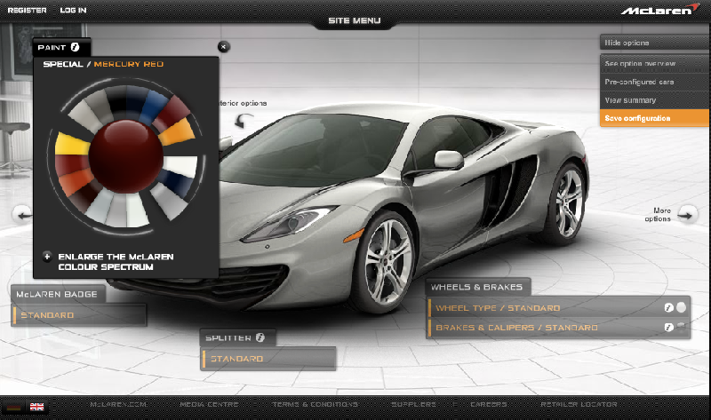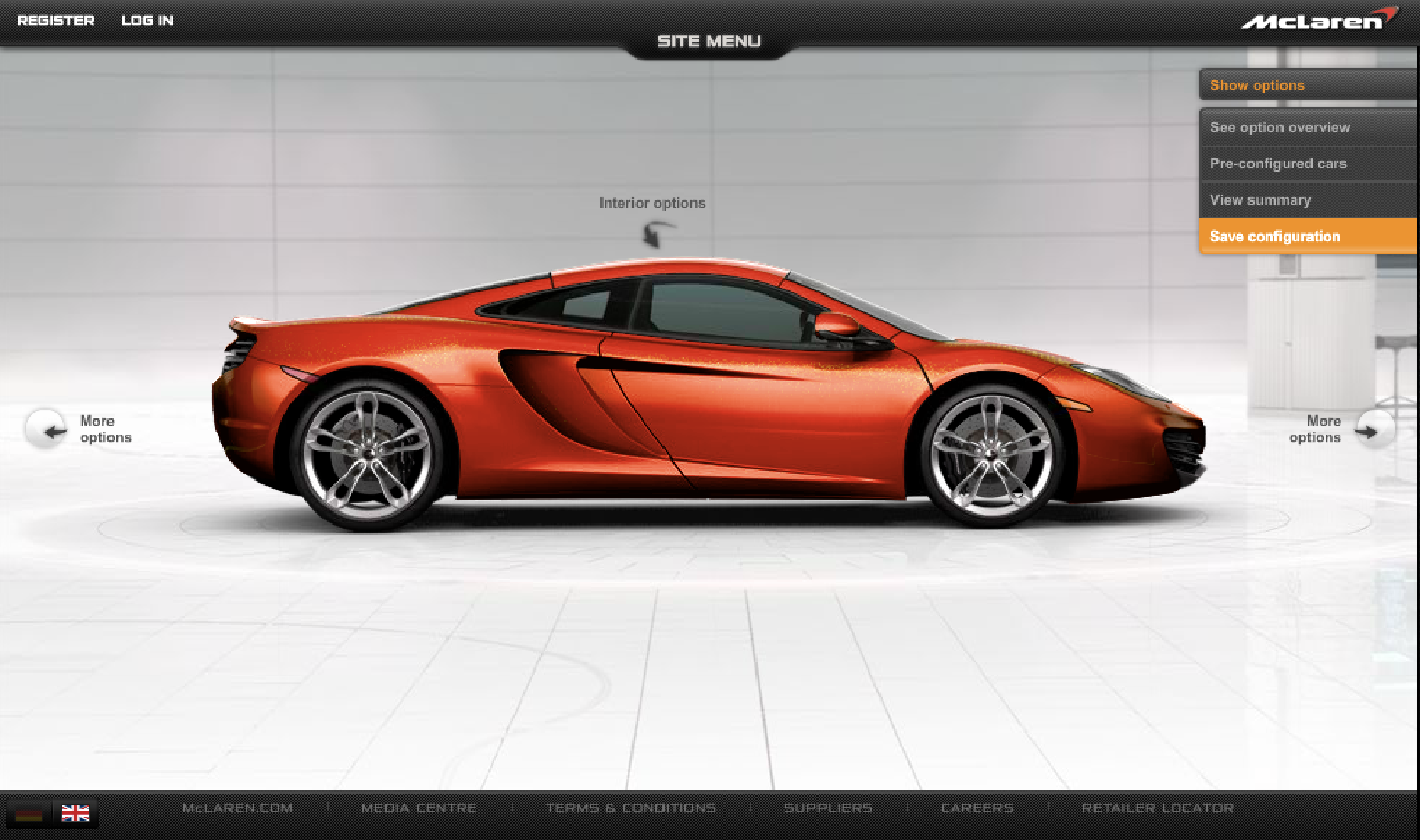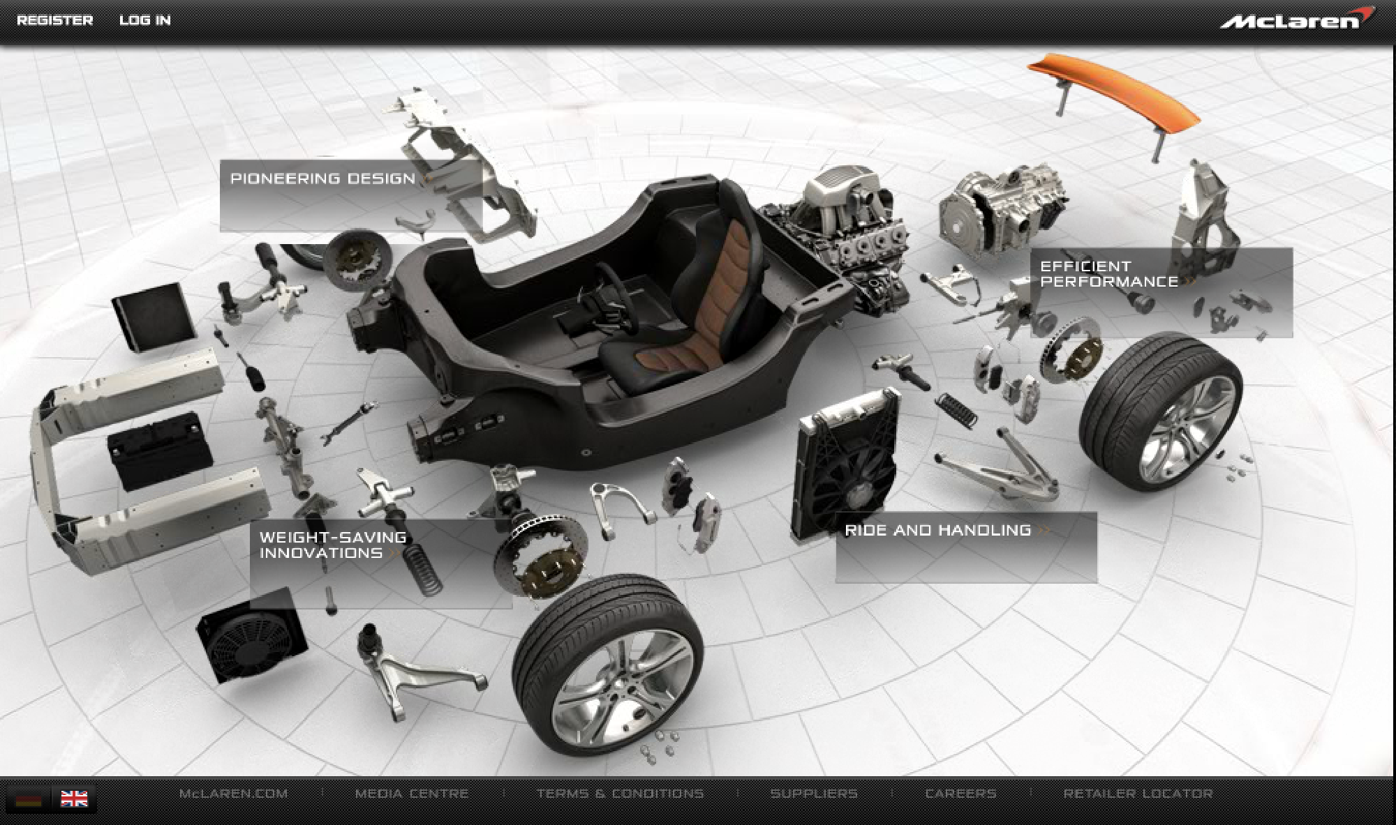 Launch website for Mclaren MP4-12C car offering 3D exploded view of inner engineering of the car, to videos, images, full 360 interactive view and car configurator. Using a lot of the same development techniques pioneered from previous car configurator projects, the interactive 3D exploded view helped take this project to the next level..