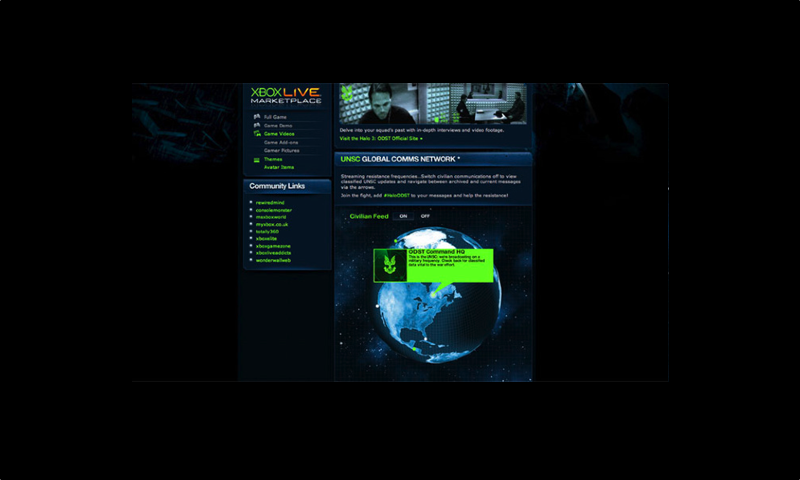 By following special hashtags created for the launch of HALO ODST the buzz surrounding the launch of the game across the world, was captured in this 3D globe visualization, tracking and displaying geo coordinates of tweets from countries around the world.