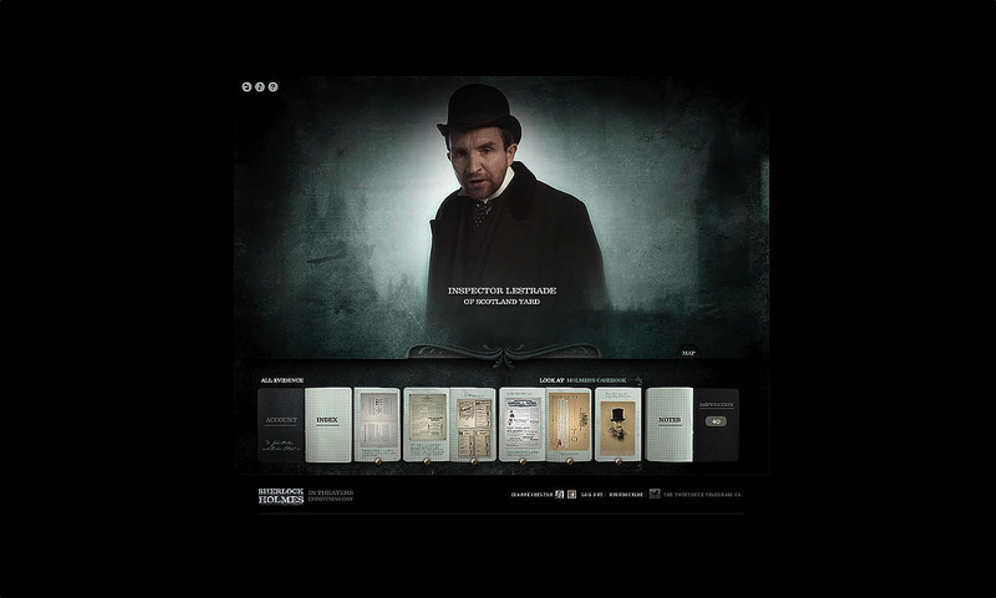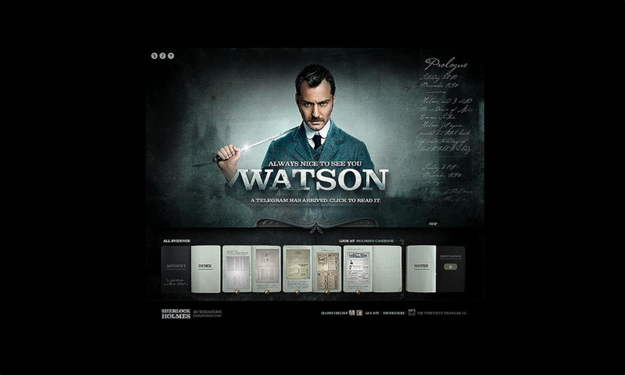 This online game built to promote the Guy Ritchie Sherlock Holmes movie utilized the Facebook social network and served as a prequel to the plot of the movie.